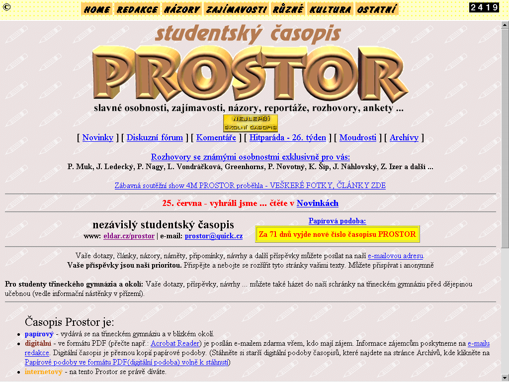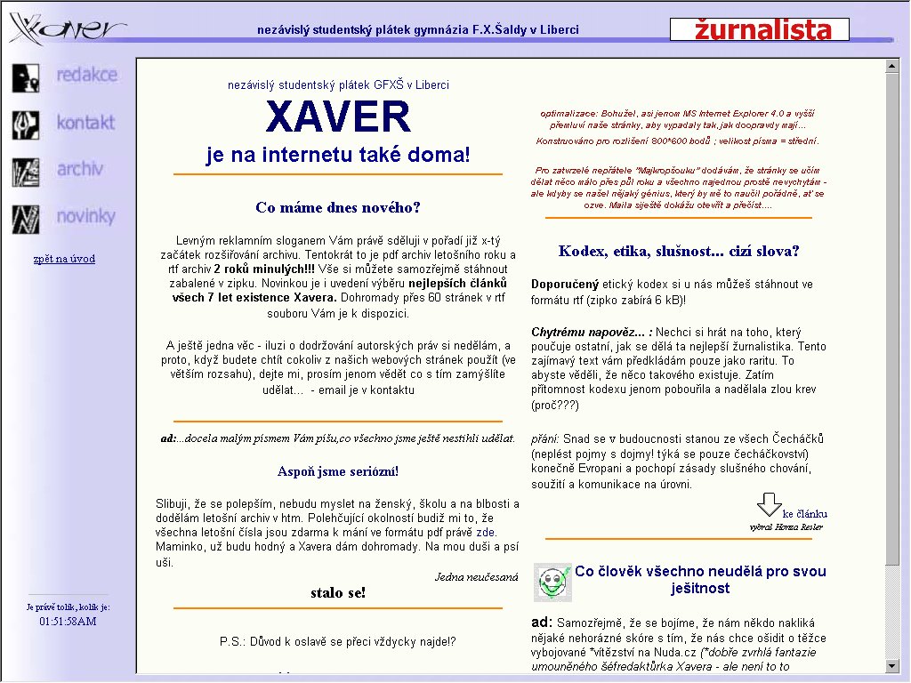 ![]() Saturn - Studentský zpravodajský web Gymnázia v Karviné (odkaz na současnou podobu stránek) |